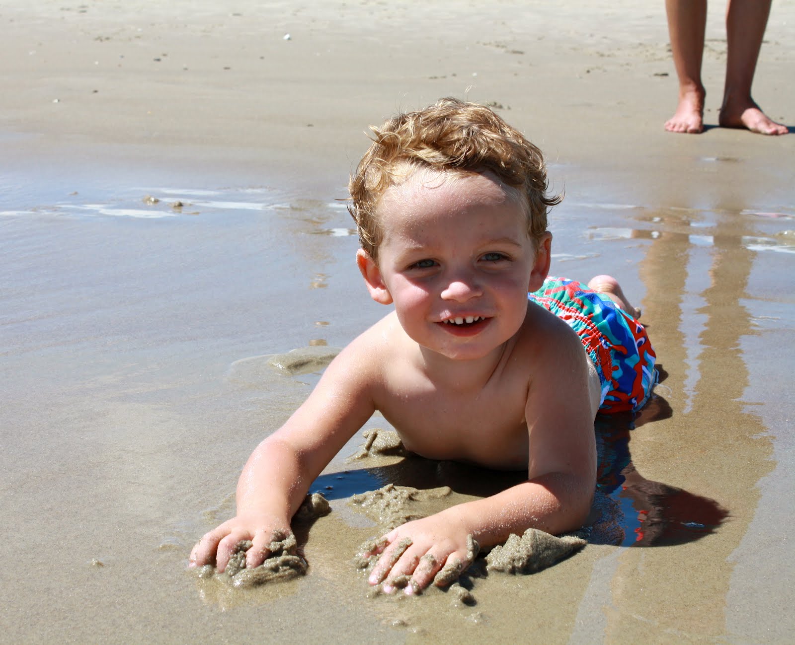 This is one of my favorite pics of my little man on vaca this year. He doesn't stay still for very long and rarely will look at the camera and smile on cue, so it was absolutely wonderful to have an opportunity where he was smiling and stationary for a minute to snap his sweet face. Plus, it captures what summer vacations are all about -- sun, sand, and carefree fun.